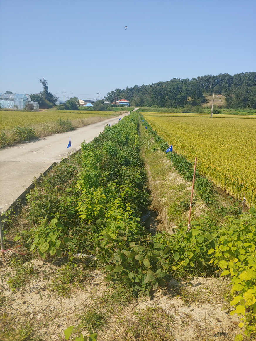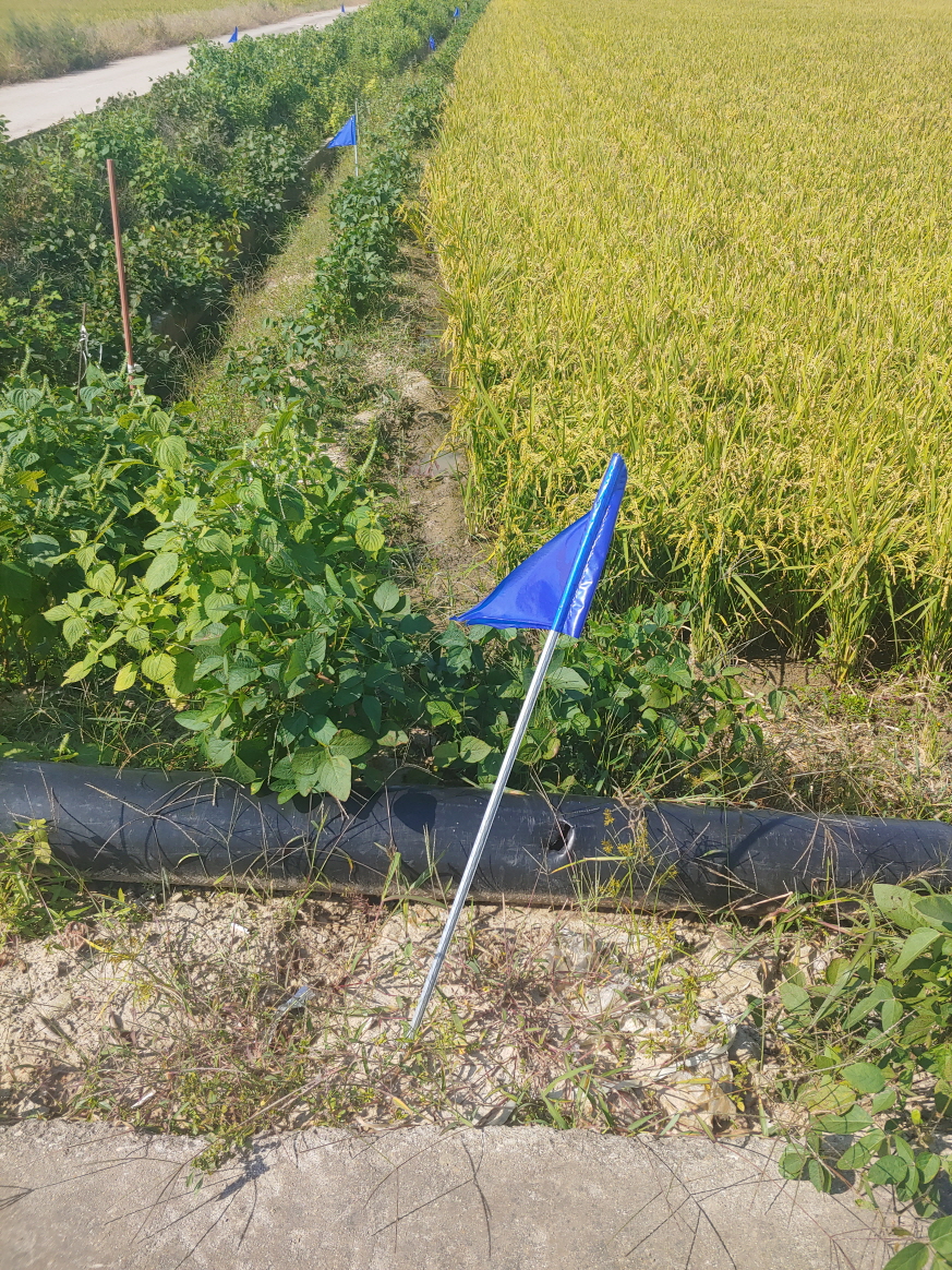 농지 옆 파란 깃발