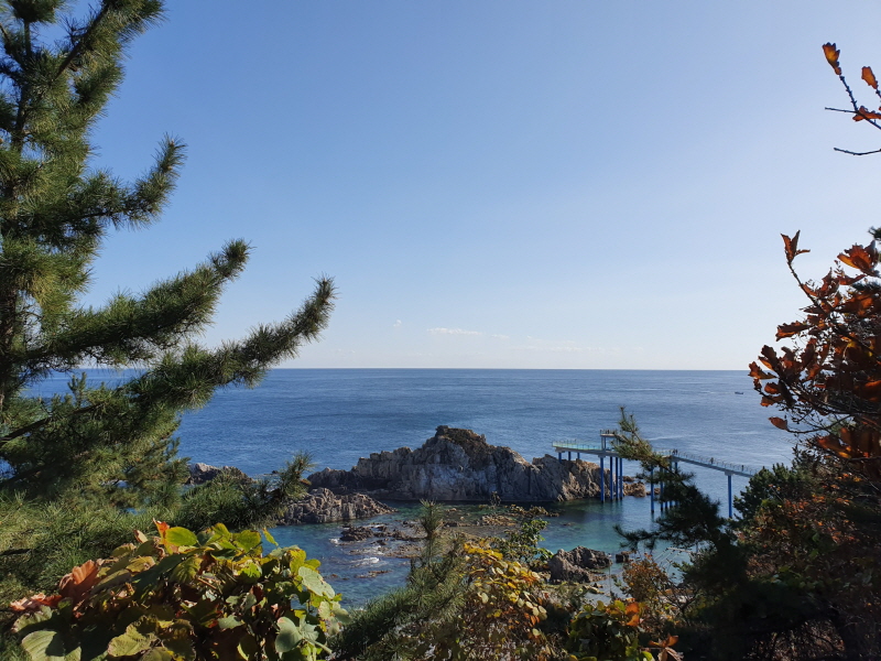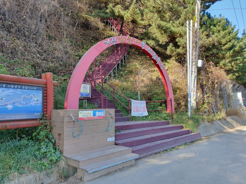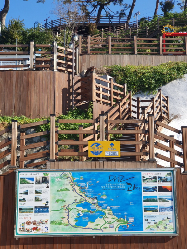 위치는 거진항 오른쪽이다. 거진해맞이산림욕장이라고 나온 곳인데, 올라가는 데 경사가 무척 가팔랐다. 거진해맞이산림욕장에서 화진포까지 이어지는 코스가 있었다. 걷기 여행을 하는 사람들은 화진포까지 걸어가는 것 같다.