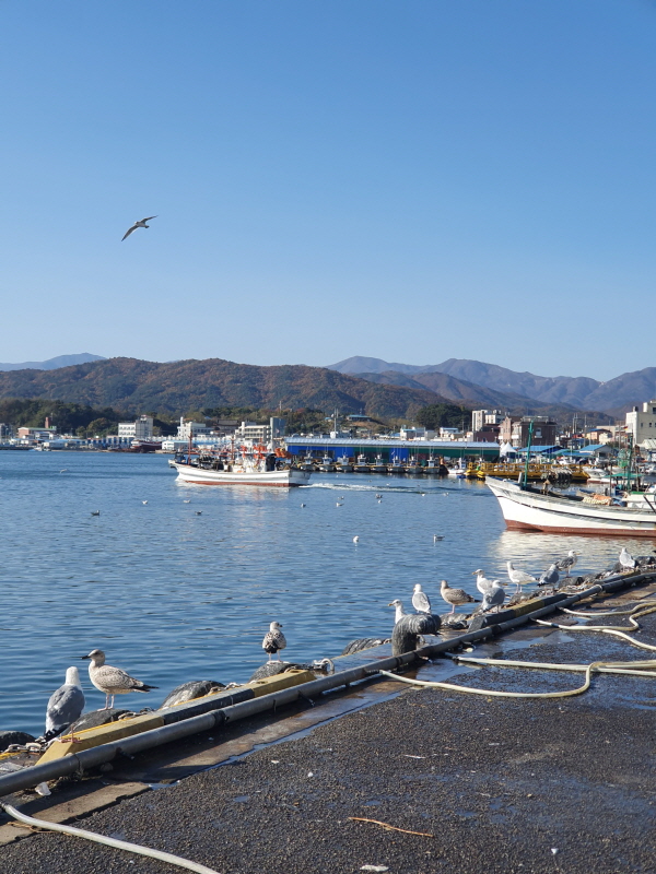 갈매기들을 보니 바다에 온 것이 실감 났다. 아침을 안 먹고 출발해서 거진항에 도착해서 초코바를 하나 꺼내 먹었는데 비닐 소리에 반응하는 갈매기가 있어서 움찔했다.