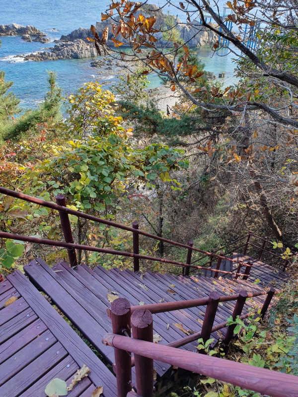 이렇게 경사가 심해서 백섬 전망대에 있던 어르신들이 안 올라온 것일 수도 있다.