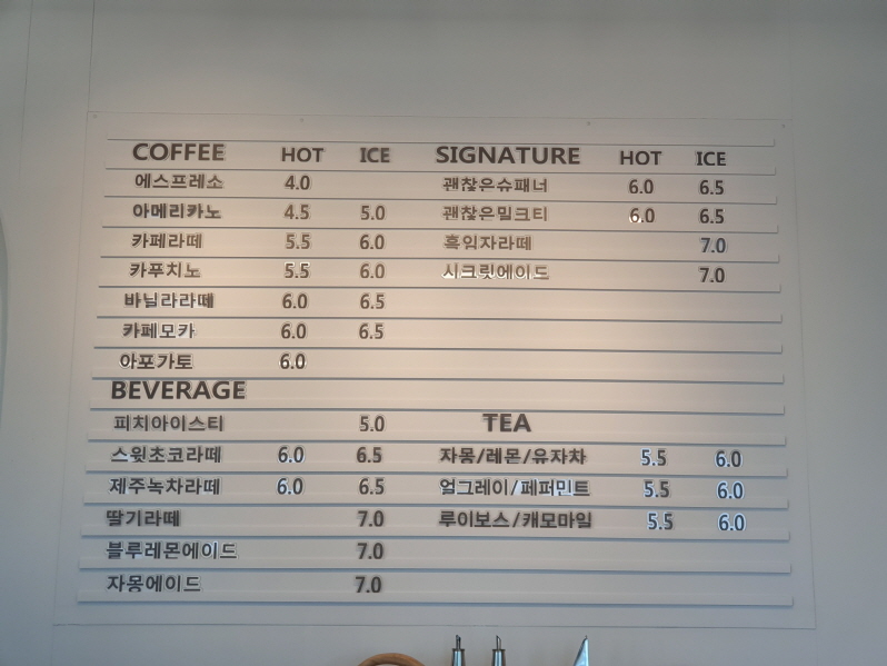 가격은 뭐 다른 관광지 카페와 비슷한 수준이다.