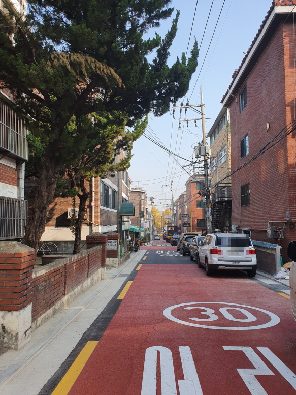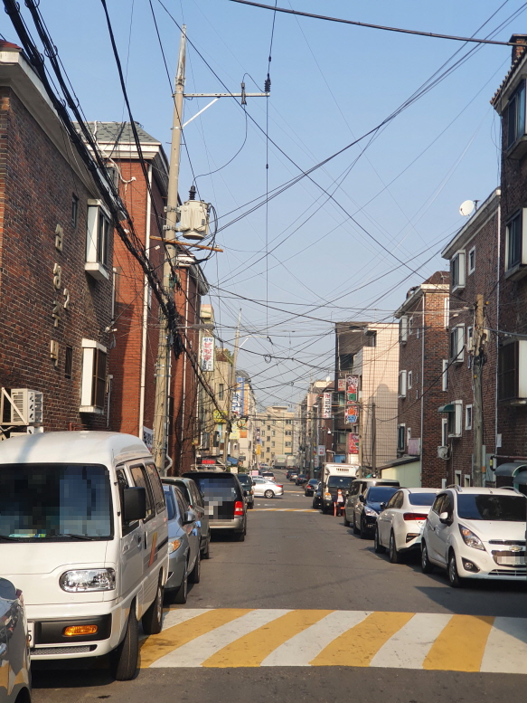 대부분 80년대 후반에서 90년대 초반에 지어진 건물들일텐데 그래도 도로는 넓은 편이었다.