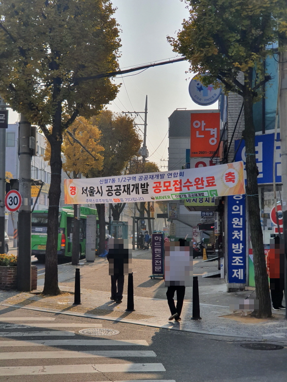 1구역과 2구역으로 나누어 사업을 진행하고 있다. 진작에 반지하라도 하나 낙찰받았어야 했는데... 공공재개발 사업이 어떻게 진행되는지 계속 관심을 갖고 지켜봐야겠다. 횡단보도에서 위 사진을 찍는데 어떤 아주머니도 저 현수막 사진을 찍었다. 동네 주민이었을까, 투자자였을까.