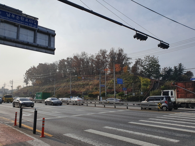 길훈아파트와 버스차고지 사이의 도로