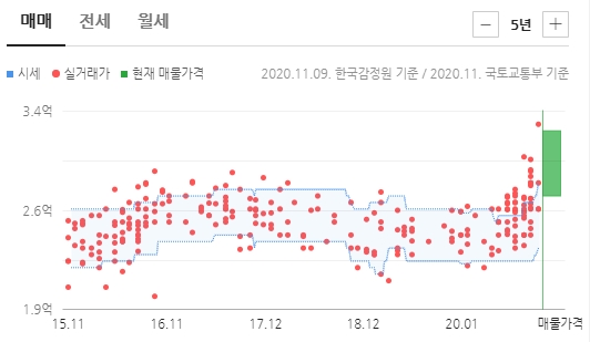 지난 5년 동안 2억 5천만 원 정도의 시세를 유지하다가 최근 상승하는 모습이 보인다.