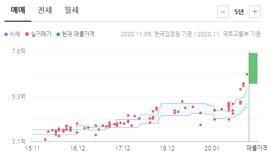 2020년 11월 기준 실거래가는 6억 4500만 원이다.