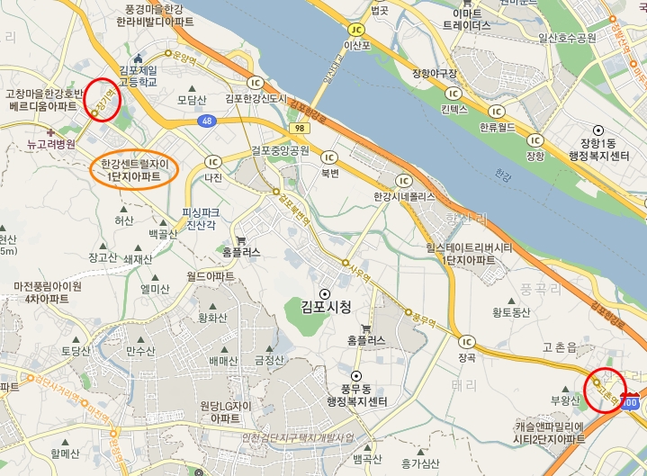 고촌역은 서울에서 가까운 편이지만 장기역은 조금 거리가 있다. 한강 센트럴 자이 1단지 아파트는 역세권도 아니다.