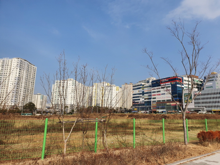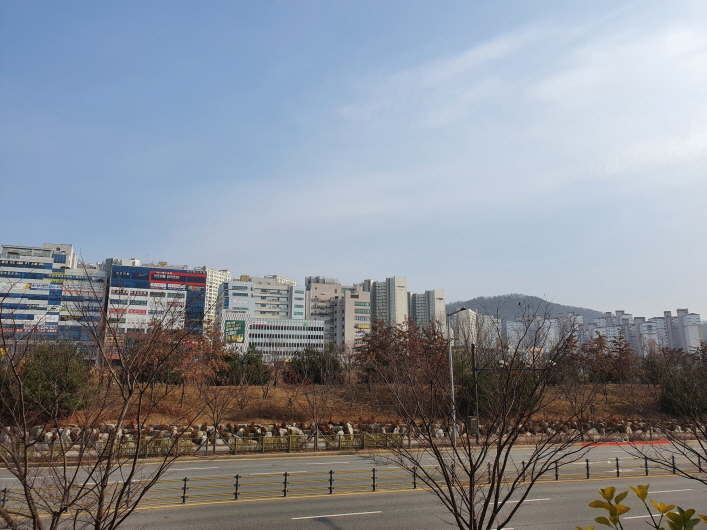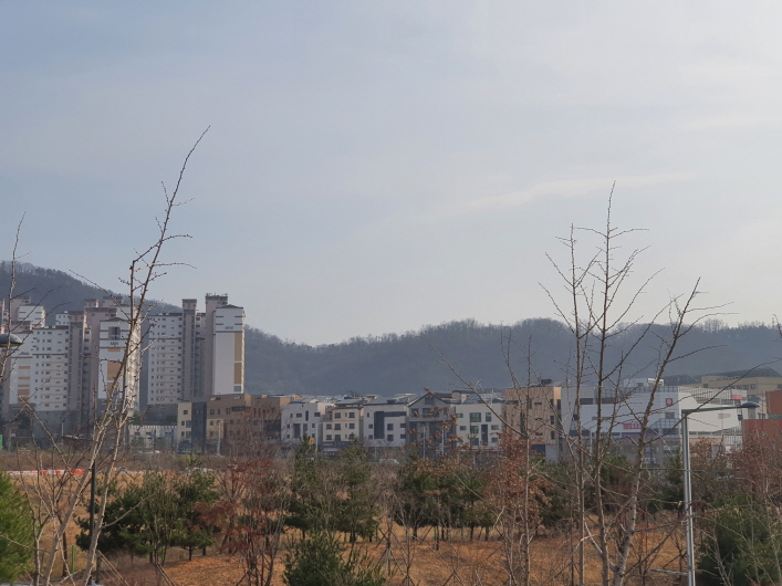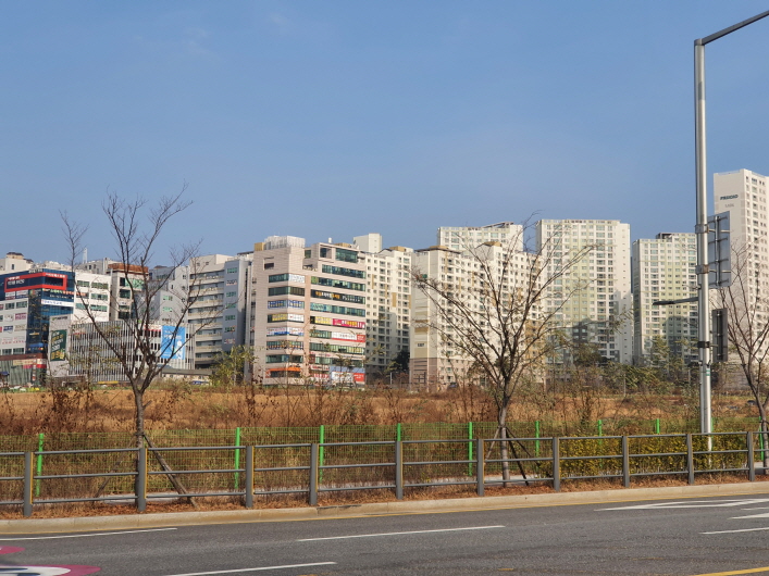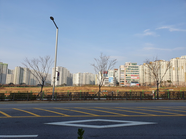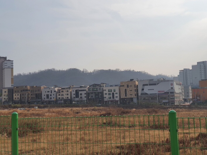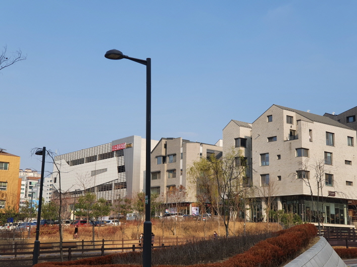 저 멀리 깔끔하게 새로 지은 단독주택들이 보인다. 가장 오른쪽에 있는 조금 큰 건물이 워니스파크다.