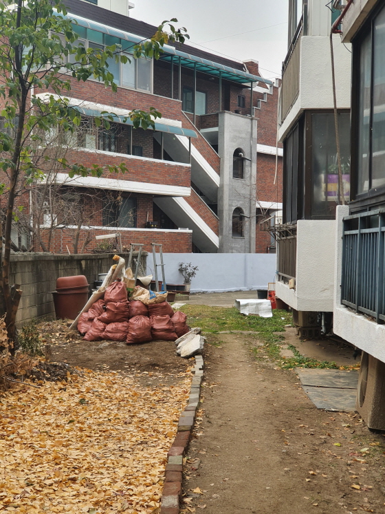 마침 해당 건물의 어느 집에서 인테리어 공사를 하고 있었다. 층수도 탑층으로 경매로 나온 물건이 있는 층과 같았다! 마침 건물 앞에서 쉬고 있던 인부를 통해 누수 때문에 공사를 하는지, 공사 범위가 어떻게 되는지, 공사 비용은 얼마나 되는지, 건물 상태는 어떤지 등을 탐문할 수 있었다. 입찰 예정은 아니지만 좋은 경험이었다. 운이 좋았다.