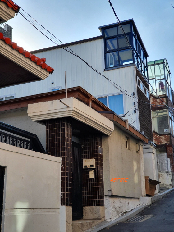 이 주택은 개미마을 입구에 있는 '금강빌라' 맞은 편에 있는 주택이다. 협소주택과 스타일이 비슷하다. 대신 면적이 조금 넓고 높이는 낮은 것 같았다.