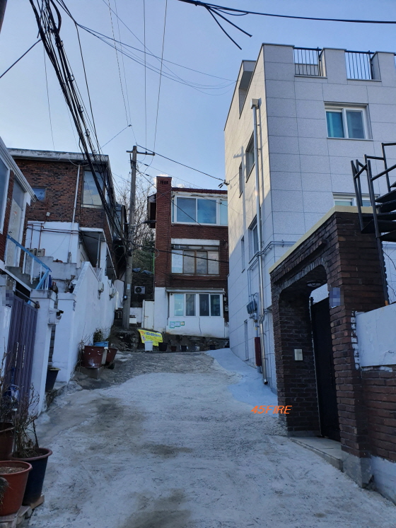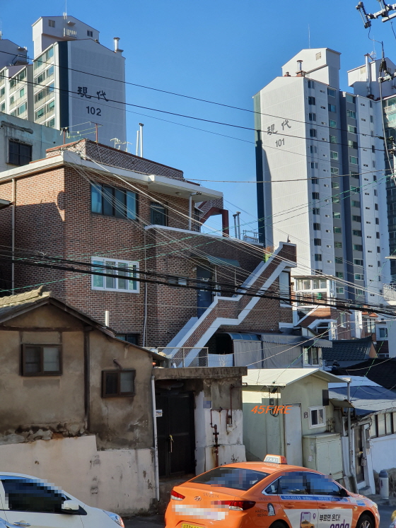 골목 아래쪽에는 이런 신축 빌라도 보였다. 협소주택처럼 완전히 독립된 공간을 원하는 사람이 아니라면 이런 곳을 선택하지 않을까.