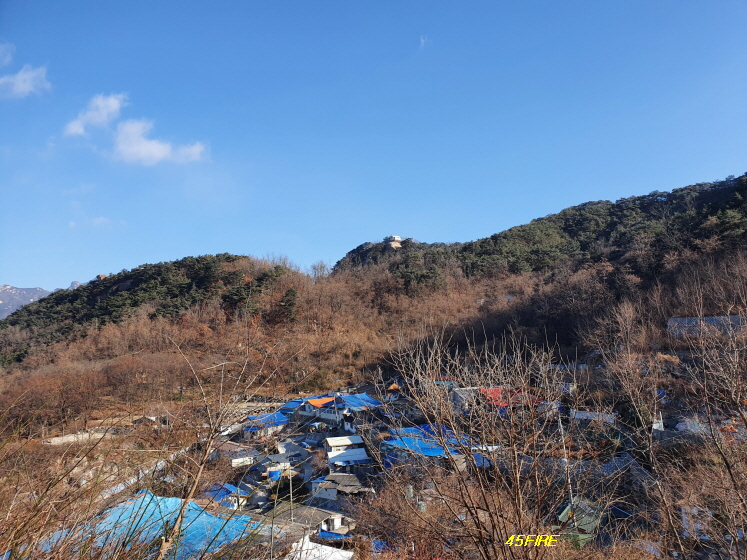 서대문 07번 마을버스가 개미마을 꼭대기까지 올라간다. 도로가 가파른데 겨울에 눈이 오면 어찌 운행을 할지... 사고도 많이 날 것 같다. 마을버스 종점에 내리면 인왕산 등산로 입구도 있다. 마을버스가 지나가는 도로 양쪽으로 집들이 있는데 양쪽 모두 경사가 가파르다. 골짜기 같은 모습이라고 할까.