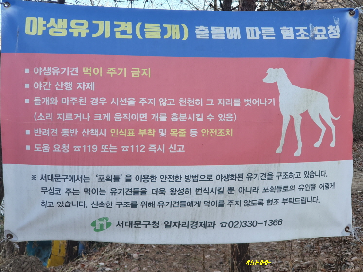 여기도 야생 유기견이 있는지... 2021년에는 철제 삼단봉을 하나 구입할 생각이다. 부동산 임장을 다닐 때 가끔 개가 위협이 된다. 후암동 주택가를 돌아다닐 때도 주택 안에서 짖는 개에 깜짝 놀랐다. 들개들을 만난다면 삼단봉이라도 하나 있어야 하지 않을까. 사직2구역 주변에서도 들개를 조심하라는 경고문을 봤다.