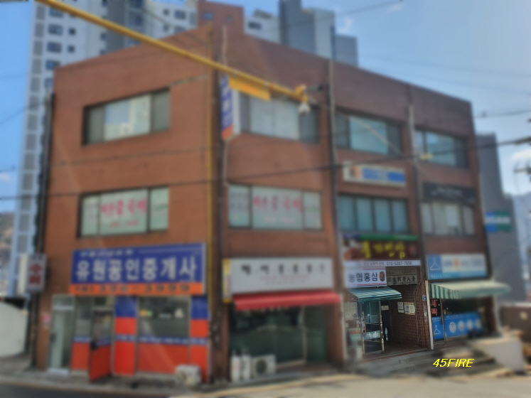 부동산, 미용실, 건강식품점, 세탁소, 학원 등이 보인다.