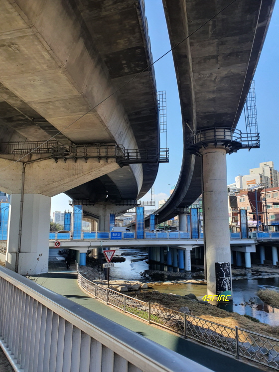 내부순환로가 지역을 단절시키는 모습이다. 동대문구 제기동에서도 고가도로는 흉물스럽게 느껴졌다. 그래도 그 아래쪽은 지역 주민들의 산책로 역할을 하고 있다.