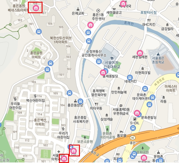 그나마 다행인 것은 상가 앞 아파트 입구에 마을버스 정류장이 있다는 것이다. 한편으로는 상가가 아파트 단지 '내'에 있는 것이 아니라 단지 '밖'에 있다고 할 수 있다. 홍은유원아파트 상가 소유자의 입장에서는 홍은유원아파트의 재건축을 기대할 수도 있는데 이렇게 떨어져 있는 상태에서 만약 갈등이 있다면 상가동을 제외하고 재건축을 하는 것도 가능하지 않을까...