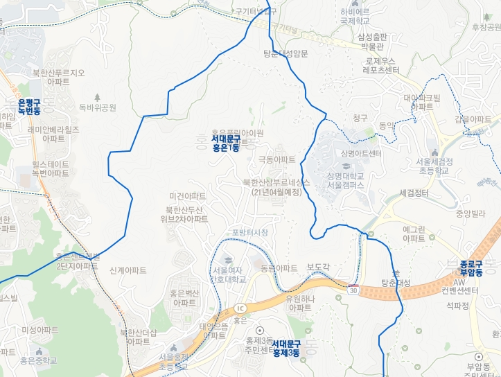북한산두산위브 아파트들과 홍은8구역 등의 경계이다.