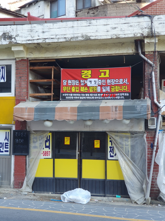 철거 '예정' 중인 현장이라고 보이는데 '예정'으로 수정하기 전에는 뭐였을까. 철거 '진행' 중이었을까.