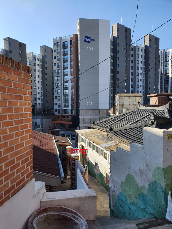 현재 진행 중인 사업의 성패와 관계 없이 이쪽 구역도 나중에는 저 멀리 보이는 아파트처럼 변하지 않을까.