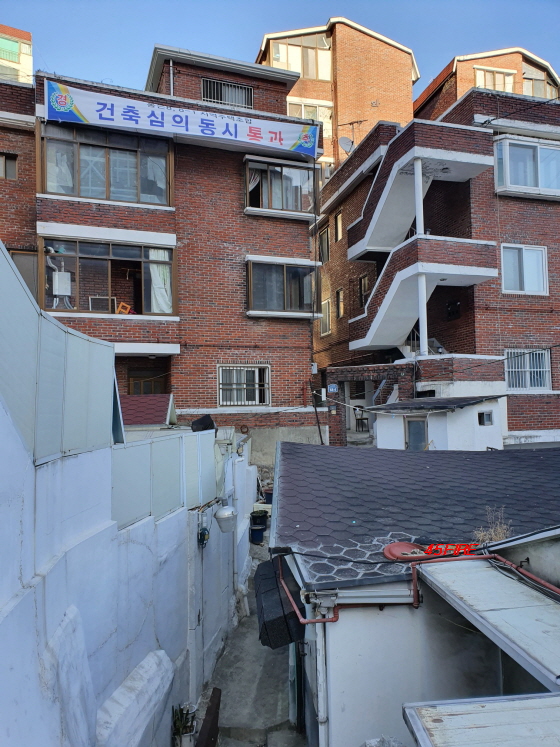 언제인지는 모르겠지만 '건축심의'는 통과되었다고 현수막이 붙어 있었다.