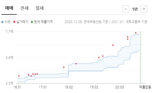2016년 2월 실거래가가 4.1억 원이었는데, 2020년 11월에는 7.6억 원이었다.