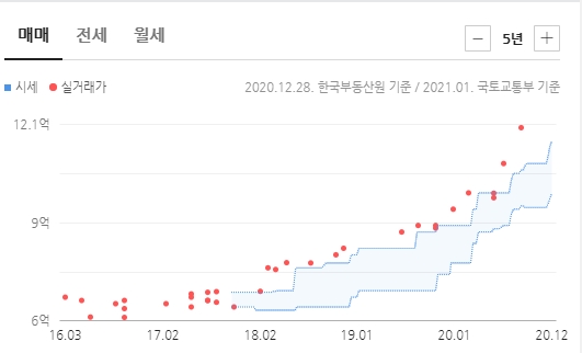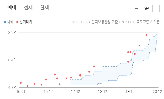 2016년 1월의 실거래가가 4.65억 원이었는데 2020년 8월에는 8.3억 원이었다.