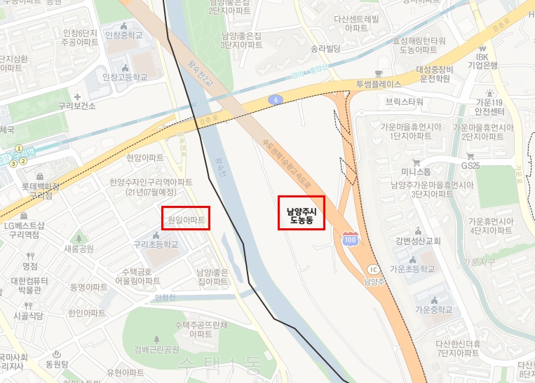 지금 지도를 검색하니까 도농동이 있긴 하다. 구리시 수택동과 남양주시 다산동 사이에 도농동이 있다. 그런데 도농동에는 아파트가 따로 있는 것은 아니었다.