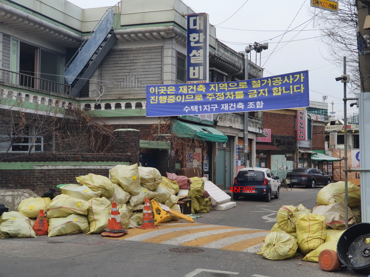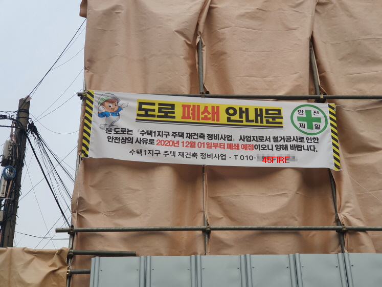 수택1지구 재건축 조합의 철거 안내 현수막