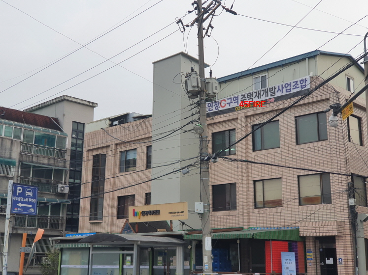 공영주차장을 사이에 두고 수택1지구 맞은편으로 인창C구역 주택재개발 조합 현수막이 보였다.