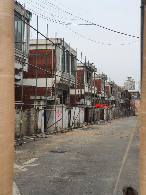 몇 주 뒤면 이 모습은 영영 사라질 것이다. 단독주택들의 모양이 거의 같은게 신기하다.