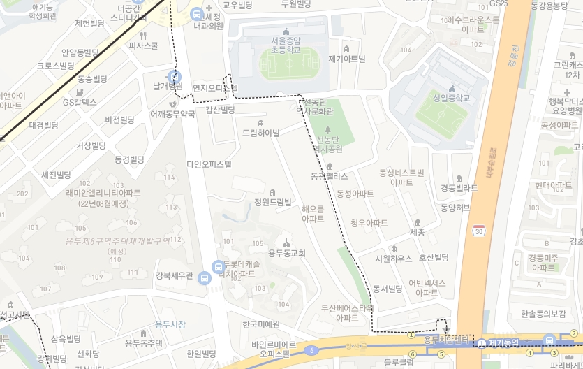 바로 이 도로를 경계로 용두동과 제기동이 나뉜다.