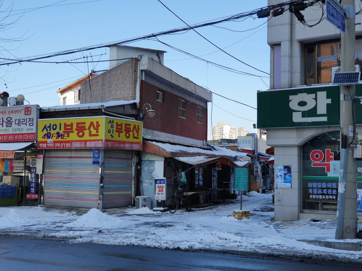 근처에 부동산도 하나 있고, 그 옆으로는 시장 골목이 있다.