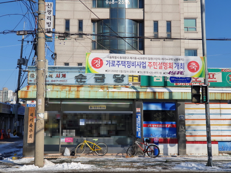 저 뒤쪽이 제기4구역인데 사거리에 접한 이 건물도 제기4구역 남측부지에 포함되는지 모르겠다.
