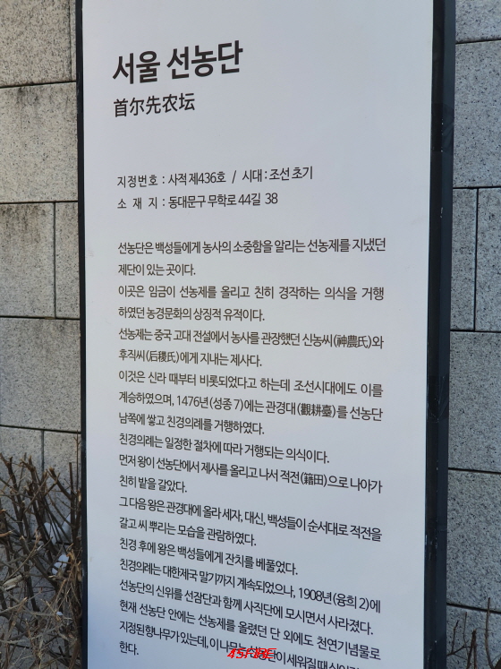 서울 시내에 이런 곳이 있는지도 몰랐다. 여기 저기 임장을 다니면서 신기한 것을 종종 보게 된다. 지도를 볼 때에는 그냥 근처에 공원 같은 것이 있구나 하는 정도였는데, 현황조사서 등을 읽어보니 이 근처에 올라가면 경매 물건지의 마당이 보인다는 말도 있었던 것으로 기억한다. 선농단 역사문화관인지, 아니면 선농단 역사공원인지 잘 기억은 안 나는데 들어갈 수는 없었다.