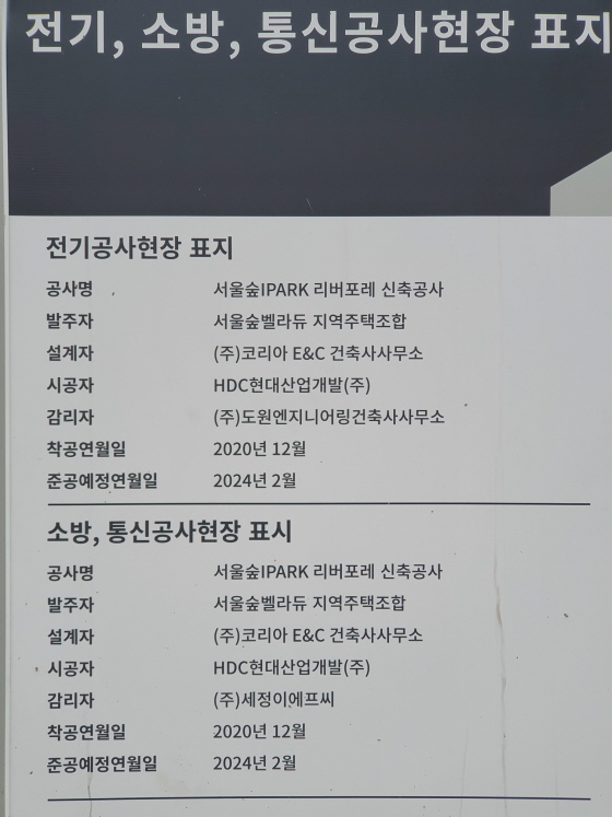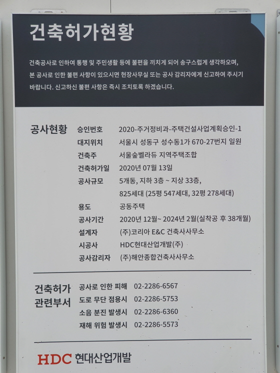 서울숲벨라듀조합이 공사를 추진하고 있다는 것을 알게 됐다.