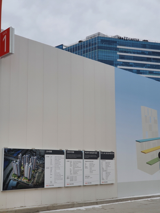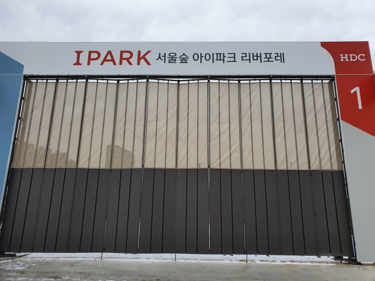 공사 펜스 뒤쪽으로 보이는 서울숲IT캐슬