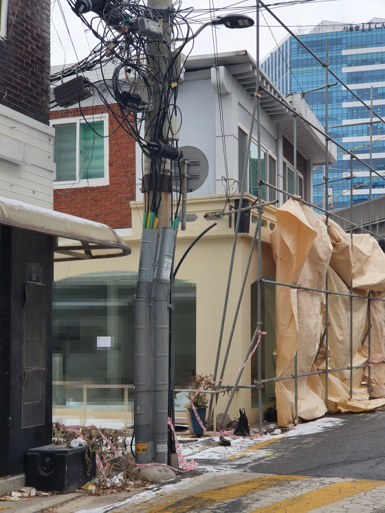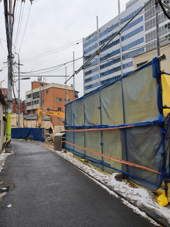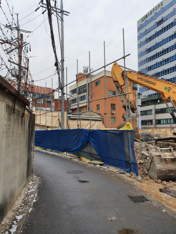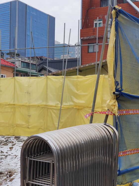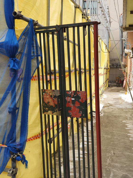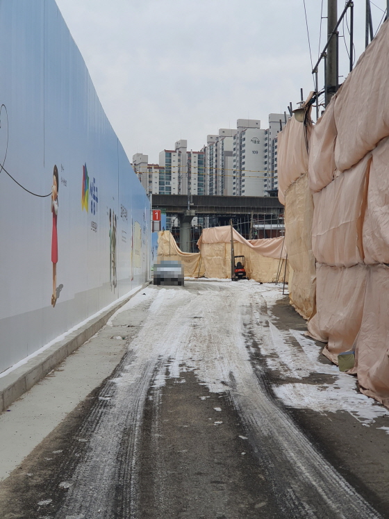 다른 골목보다 넓은 이 도로를 따라 공사 현장 게이트가 있었다.