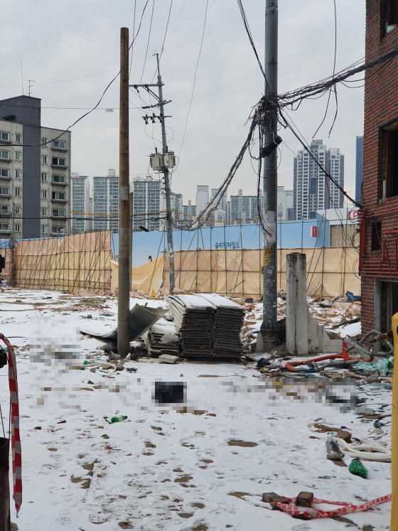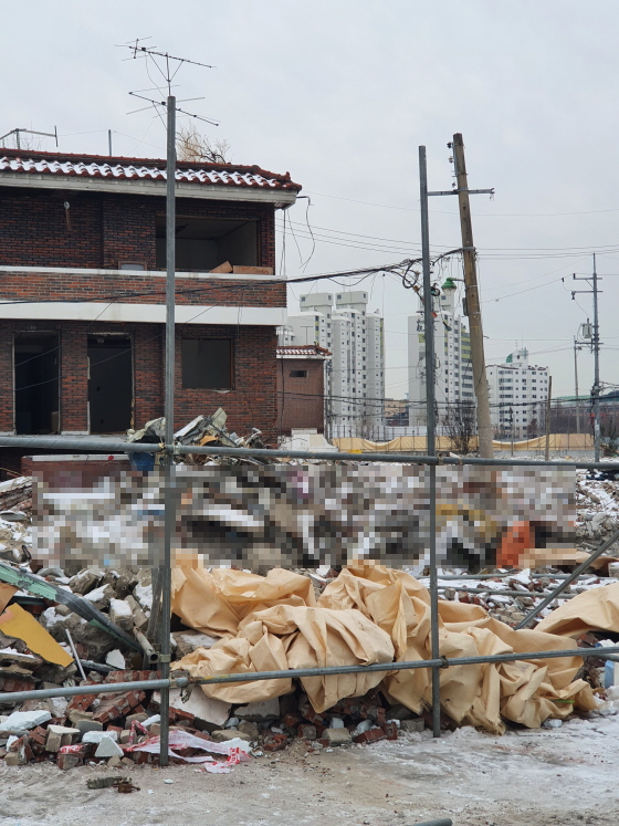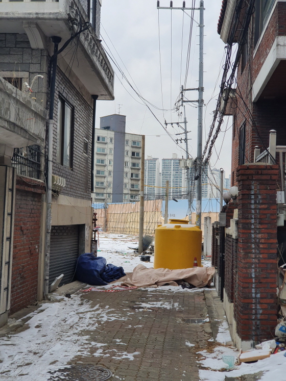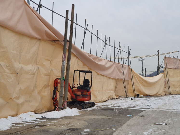 주택들 사이로 가림막이 없어서 넓은 공사 현장을 훤히 볼 수 있었다.