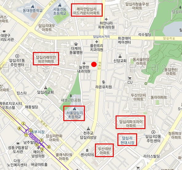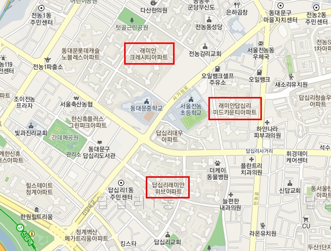 전농-답십리 뉴타운에서 대표적인 아파트들을 표시해봤다.