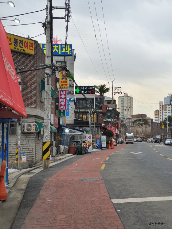 재개발 구역에서 제외된 곳인지 상가 빌딩이 들어왔다. 재개발 구역에 포함되는 것보다 바로 옆에 있는 건물이 돈을 더 많이 번다는 말이 있다. 위 상가빌딩도 그랬을 것 같다. 2,600세대의 대단지 아파트를 배후에 둔 상가 빌딩이 됐다.