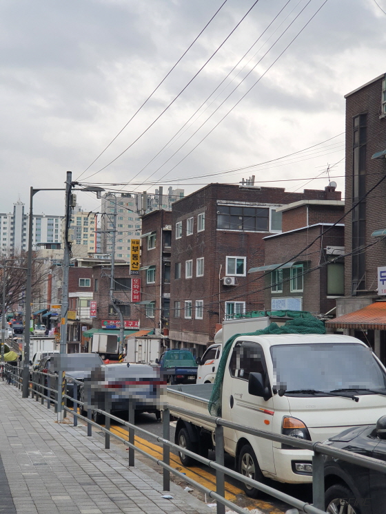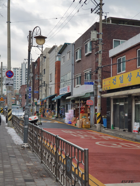 답십리역과 래미안 위브 아파트 사이의 블록들은 왜 재개발에서 제외되었을까. 큰 도로에 접한 상가들은 제외될 수도 있지만 '황물로'를 기준으로 크게 두 블록으로 나누면 그 다음 블록도 답십리16구역에서 제외됐다. 그쪽으로도 오래된 단독주택들이 보였다. 도로변에는 이런저런 물건들을 파는 상가들이 보였다.