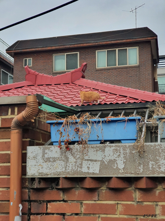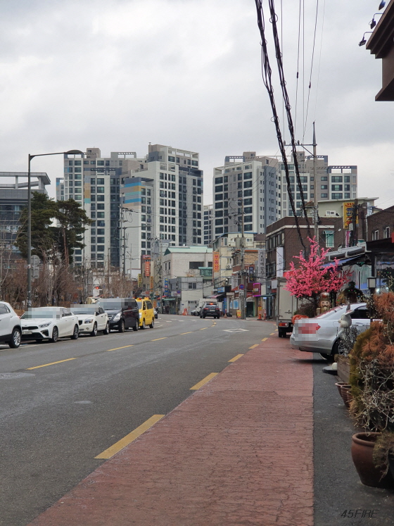 이쪽으로 와도 다른 집에 가려서 해당 주택이 보이지 않았다.