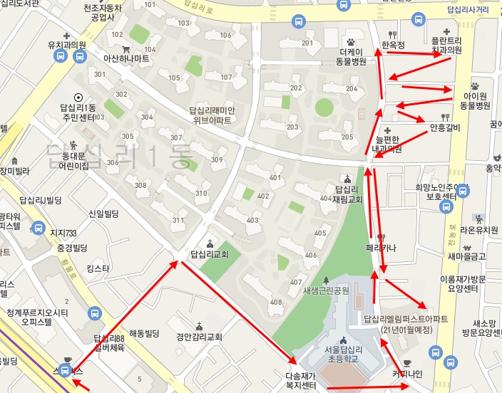직선으로 갔으면 더 빨리 답십리역까지 갔을 텐데... 곡선인 도로를 아무 생각 없이 따라가다가 조금 더 와버렸다.