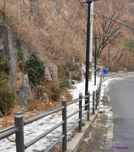그냥 내려가다가는 자빠질 것 같아서 도로로 나와서 걸었다.
