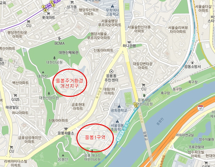 현대아파트와 응봉주거환경개선지구 사이