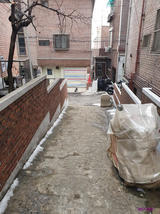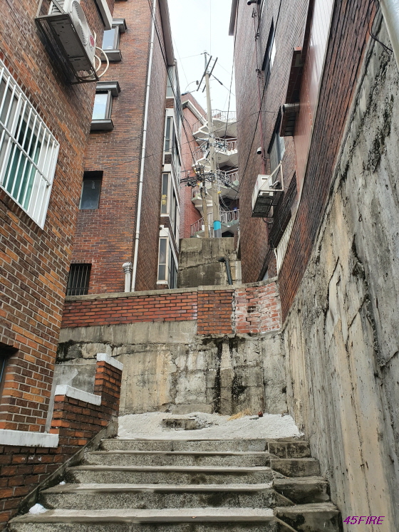 이런 계단들이 있으니 좁은 골목에는 차도 못 들어가고 주차공간은 당연히 없을 것이다.