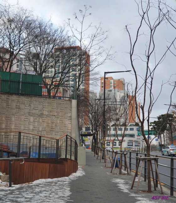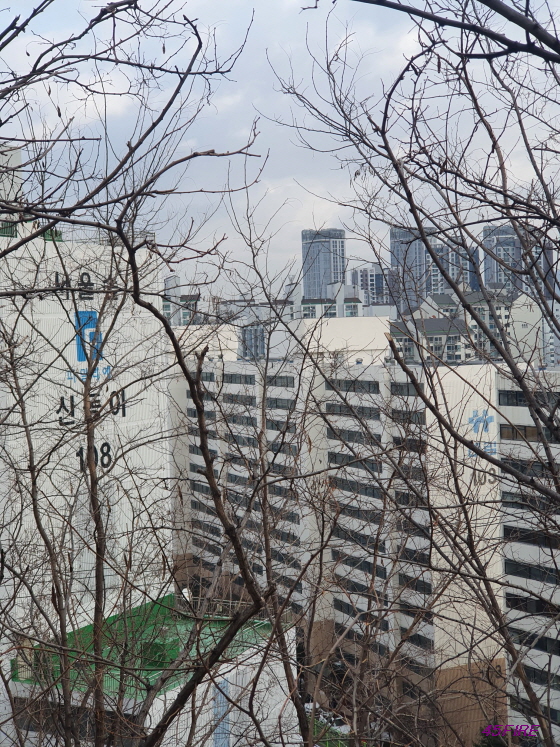 산이라고 해야 할까, 공원이라고 해야 할까. 아무튼 아파트와 응봉주거환경개선지구 사이에 녹지 공간이 있는데 그쪽으로 가는 길이다.