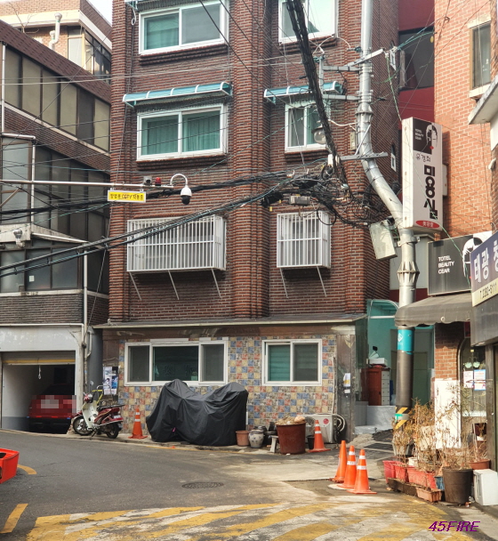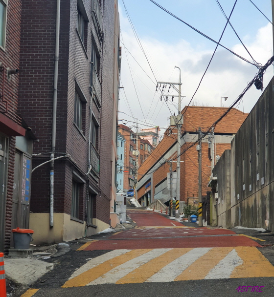 경사가 심한 언덕길에 빌라들이 있었다.