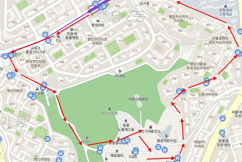응봉주거환경개선지구는 행당역과 응봉역 사이에 있어서 가기 조금 애매한 위치였다. 그만큼 지하철역에서 멀다는 뜻이다. 아무튼 행당역에서 가기로 정했고, 행당역 4번 출구로 나와서 행당한진타운 아파트를 주변으로 크게 돌아서 응봉동으로 갔다. 응봉주거환경개선지구를 구석구석 돌아보고 아파트들 사이를 지나 다시 행당역으로 돌아왔다.