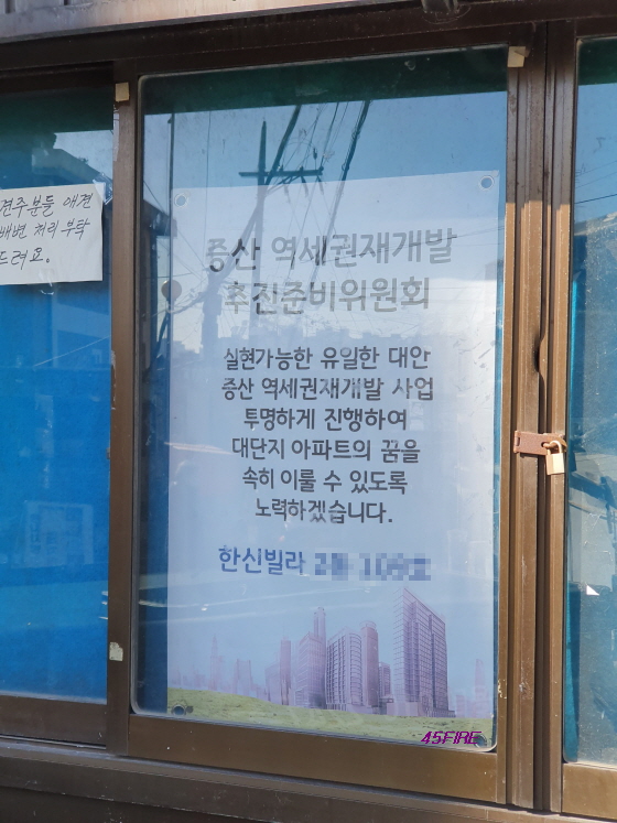 증산 역세권재개발 추진준비위원회가 한신빌라에 있었다. 이런 것을 보면 증산4구역은 정비구역에서 해제되었지만 재개발을 추진하는 사람들이 있다는 것을 알 수 있다.